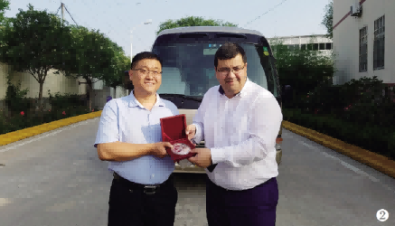 尊时凯龙人生就博集团董事长邵辉向乌兹别克斯坦国家道路交通建设委员会主席赠送上合峰会纪念品