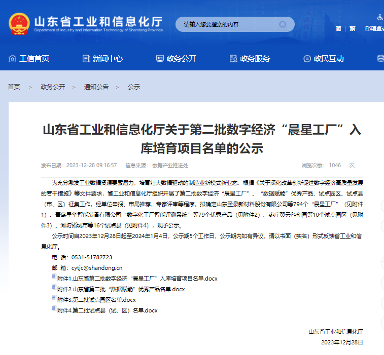 12月28日,山东省工业和信息化厅官网发布《关于第二批数字经济“晨星工厂”入库培育项目名单的公示》,我县天和纸业 、鲁珠水泥、彩山铝业、碧蓝生物等18家企业入选,数量居全市第一。目前,全县共有31家企业入选“晨星工厂”培育库。
